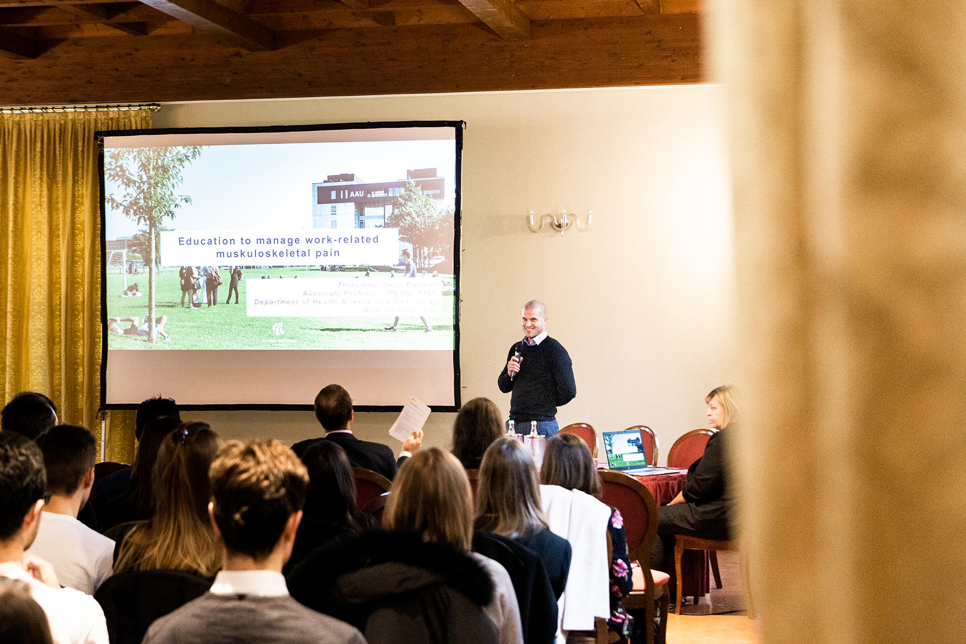After his speech, other speakers shared their experiences regarding prevention of musculoskeletal disorders, showing the progress made during the last few years in both the scientific and working fields. Dr. Thorvaldur Palsson presented the first results obtained within the project and talked about education in the management of work-related musculoskeletal pain. To follow, Dr. Steven Linton explained the relationship between psychological factors and musculoskeletal disorders, while Dr. Morten Villumsen exposed the data on physical behaviours and musculoskeletal pains.
