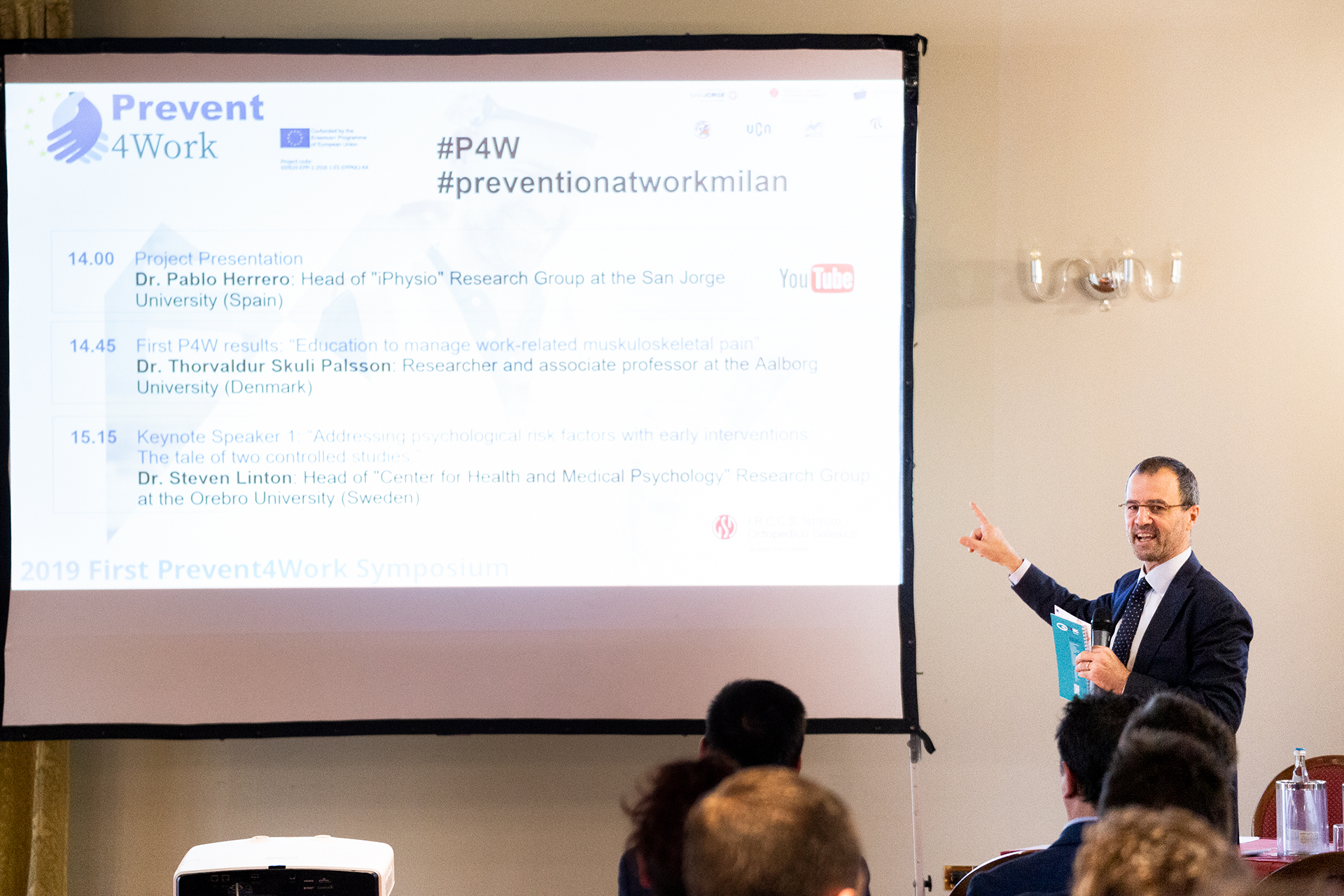 In fact, the first Milan symposium was conceived exactly with the aim of raising awareness of work-related musculoskeletal disorders and presenting new ideas on how to tackle these pathologies. In addition to the P4W consortium partners, composed by representatives of the academic, technological and health world from Italy (Galeazzi Orthopedic Institute and VITECO Srl), Denmark (University College of Northern Denmark and the University of Aalborg) and Spain (San Jorge University, INP Formación and Geoslab), external specialists in the field of physiotherapy and clinical psychology took part in the symposium.